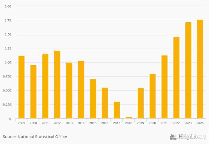 Bank pre-tax ROA rose 2.85% to 1.76% in India in 2024, according to the National Central Bank.