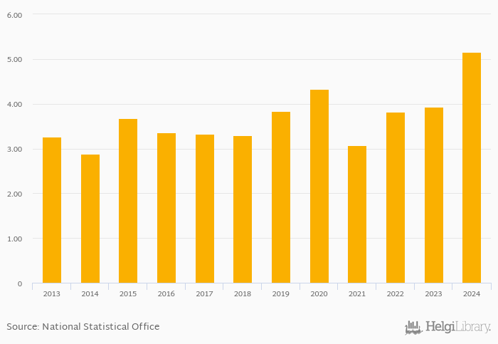 Historically, bank pre-tax ROA in Guinea reached an all time high of 5.16% in 2024 and an all time low of 2.87% in 2014.