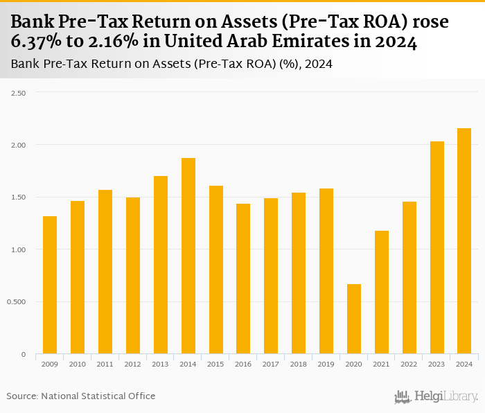 Historically, bank pre-tax ROA in United Arab Emirates reached an all time high of 2.16% in 2024 and an all time low of 0.669% in 2020.