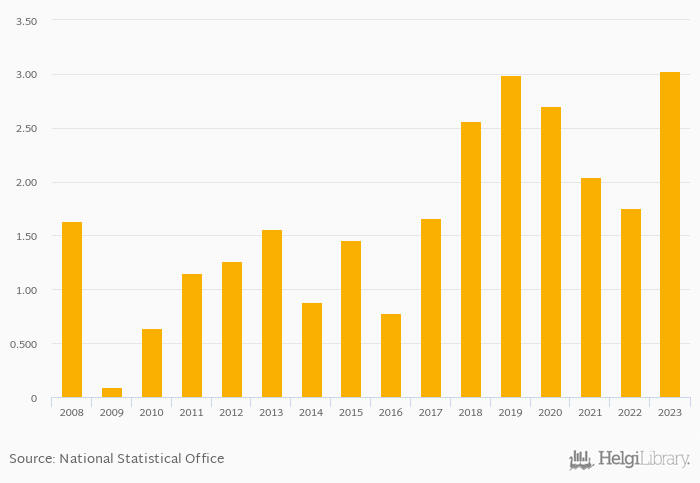 Historically, bank pre-tax ROA in Uruguay reached an all time high of 3.03% in 2023 and an all time low of 0.097% in 2009. When compared to Uruguay's main peers, bank pre-tax ROA in Argentina amounted to 8.19%, 1.57% in Brazil, 1.51% in Chile and 2.36% in Paraguay in 2023.