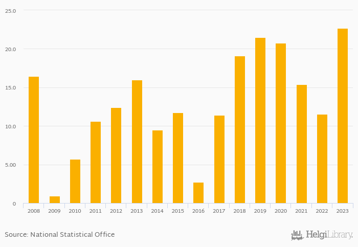 Historically, bank pre-tax ROE in Uruguay reached an all time high of 22.7% in 2023 and an all time low of 0.898% in 2009. When compared to Uruguay's main peers, bank pre-tax ROE in Argentina amounted to 26.9%, 13.7% in Brazil, 15.4% in Chile and 17.2% in Paraguay in 2023.