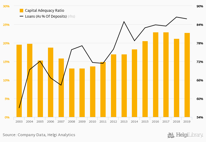 Bank's loan to deposit ratio reached 85.8% at the end of 2019, down from 86.4% when compared to the previous year. Some 10 years ago, loan to deposit ratio of the bank amounted to 77.1%.
