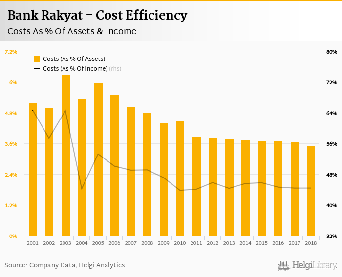 Bank Rakyat's cost to income ratio reached 44.4% in 2018, up from 44.4% compared to the previous year.