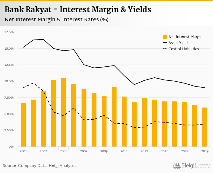 Bank Rakyat's net interest margin amounted to 6.02% in 2019, down from 6.41% compared to the previous year.