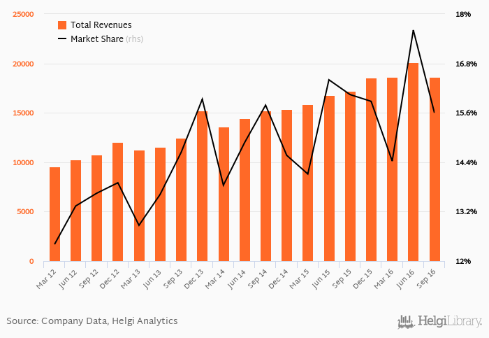 That's compared to a 14.5% market share the bank held in terms of total assets at the end of 2016-09-30.