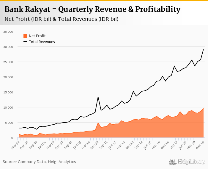 Bank Rakyat made a net profit of IDR 9,574 bil under revenues of IDR 29,167 bil in the fourth quarter of 2019, up 7.85% and 14.2% respectively when compared to the same period last year.