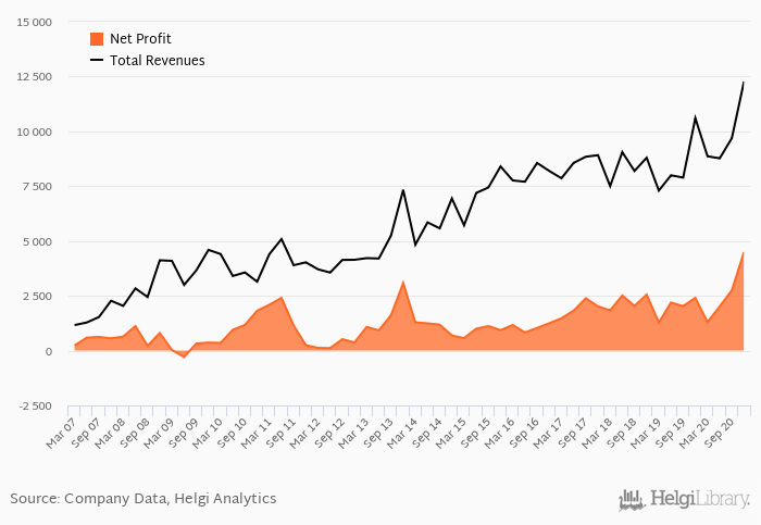 On the other hand, bank’s revenues amounted to an all time high of RUB 12,276 mil in 4Q2020 and an all time low of RUB 1,165 mil in 1Q2007. The average revenues in the last six quarters reached RUB 9,682 mil.