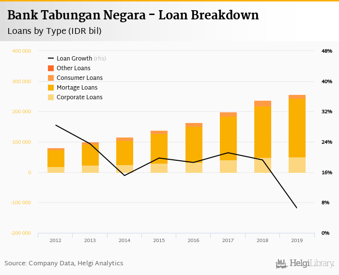 At the end of 2019, Bank Tabungan Negara's loans accounted for 111% of total deposits and 80.1% of total assets.