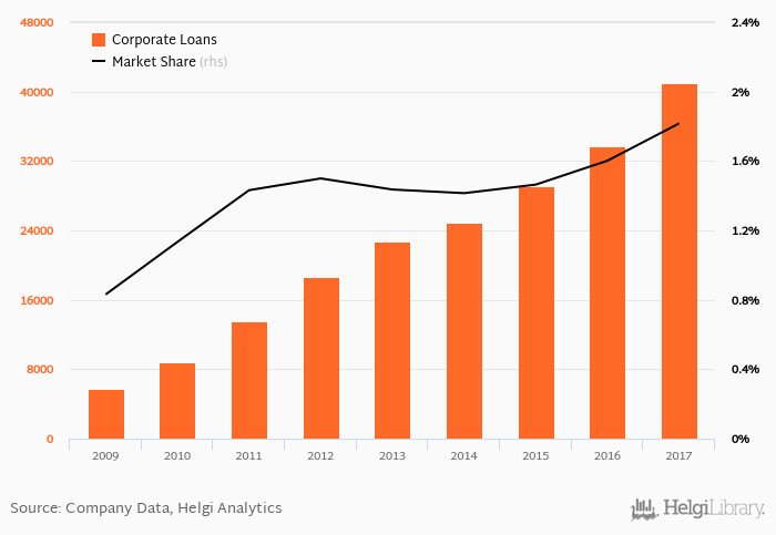 Bank Tabungan Negara accounted for 1.82% of all corporate loans issued in Indonesia at the end of 2017. Historically, the bank’s market share in corporate loans reached an all time high of 1.82% in 2017 and an all time low of 0.831% in 2009.