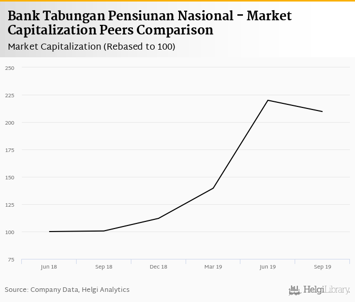Bank Tabungan Pensiunan Nasional stock traded at IDR 3,300 per share at the end of third quarter of 2019 implying a market capitalization of USD 1,793 mil.