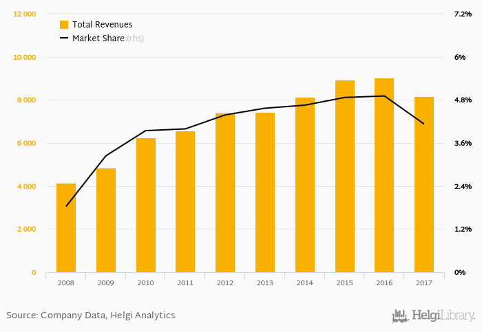 As a result, Banka Postanska Stedionica accounted for 4.13% of all bank revenues generated by banks in Serbia in 2017. Historically, the bank’s market share in total revenues reached an all time high of 4.91% in 2016 and an all time low of 1.83% in 2008.