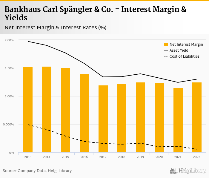 Average asset yield was in, down from when compared to previous year. On the other hand, cost of funding amounted to in, down from.