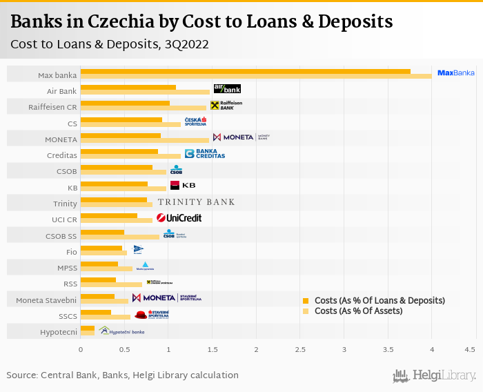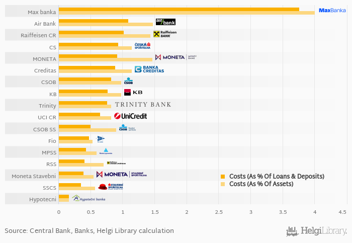 Hypotecni Banka achieved the lowest costs when compared to income followed by Fio banka and Moneta Stavebni Sporitelna: