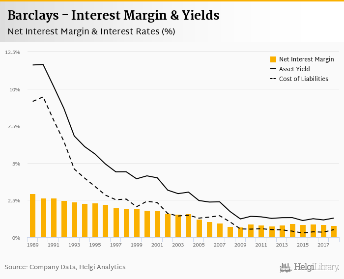 Historically, the bank’s net interest margin reached an all time high of 2.94% in 1989 and an all time low of 0.690% in 2009. The average margin in the last five years amounted to 0.868%.