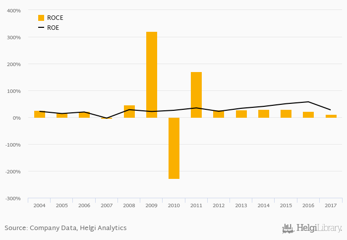 The result implies a return on equity of 27.2% and a return on invested capital of 10.4% in 2017. That is compared to an average of 41.9% and 23.7% over the last five years.