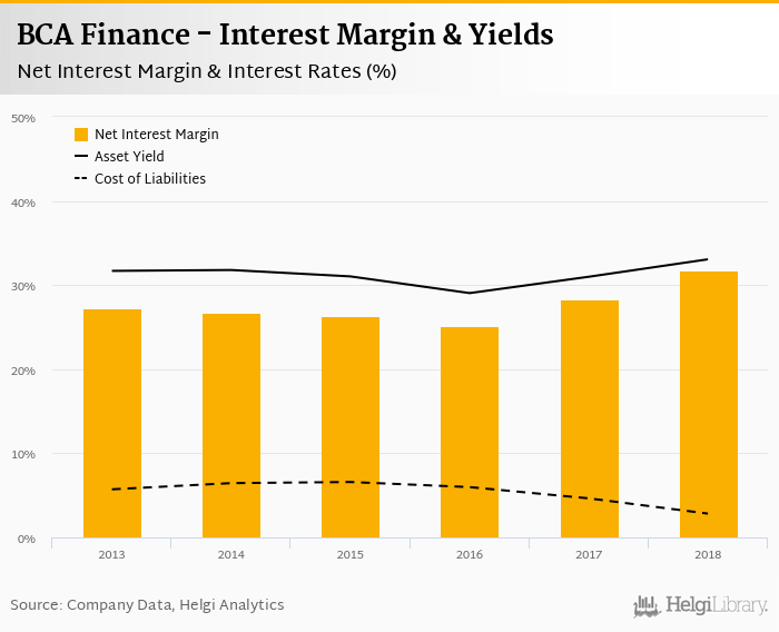 BCA Finance's net interest margin amounted to 31.7% in 2018, up from 28.3% compared to the previous year.