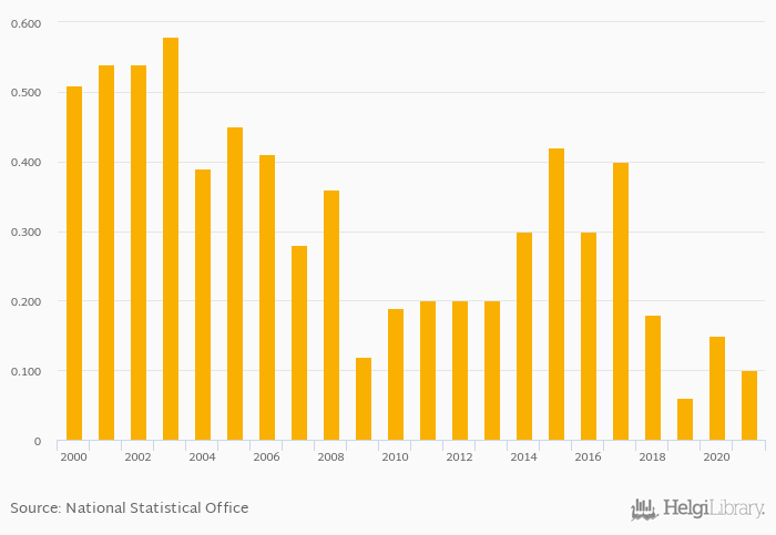 Historically, bean consumption per capita in Fiji reached an all time high of 0.580 kg in 2003 and an all time low of 0.060 kg in 2019. When compared to Fiji's main peers, bean consumption per capita in Estonia amounted to 0.050 kg, 0.120 kg in Norway, 0.110 kg in Russia and 0.140 kg in Sweden in 2021.