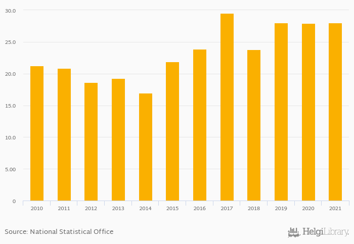 | Burundi | kg | ... | ... | ... | ... | ... | ... | ... | ... | ... | 21.9 | 23.9 | 29.5 | 23.8 | 28.0 | |||||||