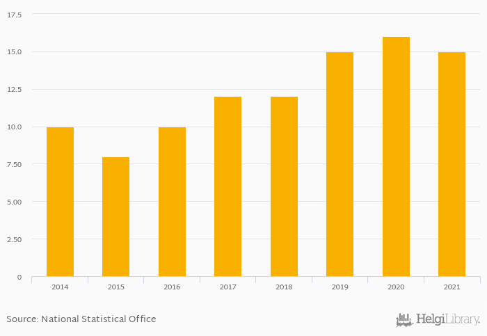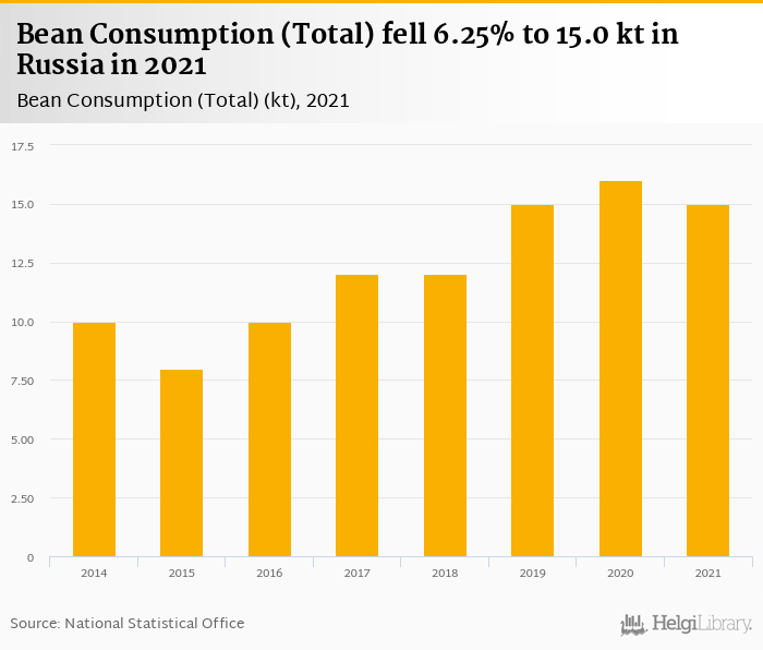 Total bean consumption fell 6.25% to 15.0 kt in Russia in 2021, according to Faostat.