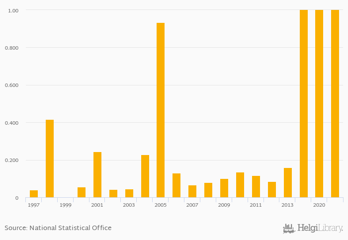 Historically, total bean consumption in Guyana reached an all time high of 1.00 kt in 2021 and an all time low of 0.003 kt in 1999.