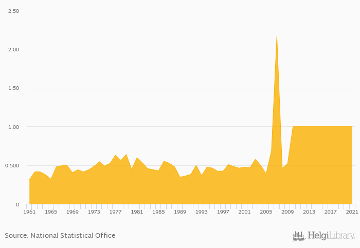 Historically, total bean consumption in Norway reached an all time high of 2.17 kt in 2007 and an all time low of 0.312 kt in 1961.
