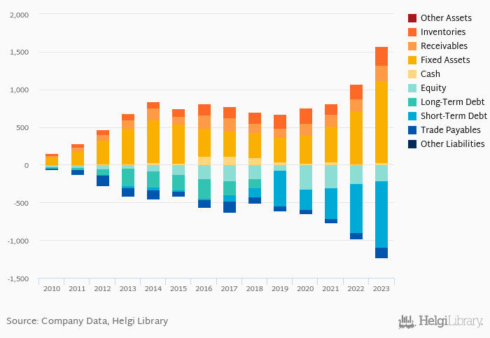 Net debt against equity is up 347 pp from five years ago (59.0%). The ratio against EBITDA increased from 2.64x seen in 2018 to 9.97x.