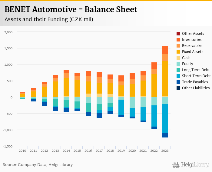 BENET Automotive's total assets reached CZK 1,580 mil at the end of 2023, up 47.2% compared to the previous year.