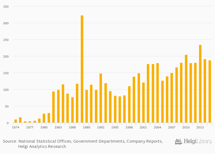 Historically, bentonite production in Senegal reached an all time high of 323 kt in 1988 and an all time low of 4.38 kt in 1976.