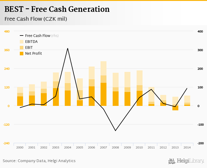 BEST made a net profit of CZK 7.54 mil with revenues of CZK 854 mil in 2014, up by 126% and up by 0.049%, respectively, compared to the previous year. This translates into a net margin of 0.883%.