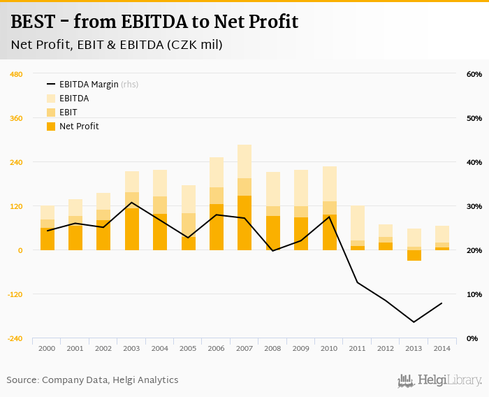 BEST made a net profit of CZK 7.54 mil with revenues of CZK 854 mil in 2014, up by 126% and up by 0.049%, respectively, compared to the previous year. This translates into a net margin of 0.883%.