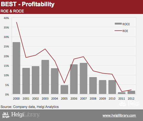 Company's average ROE amounted to 17.7% in 2000-2010. This dropped to 1-2% in the last two years.