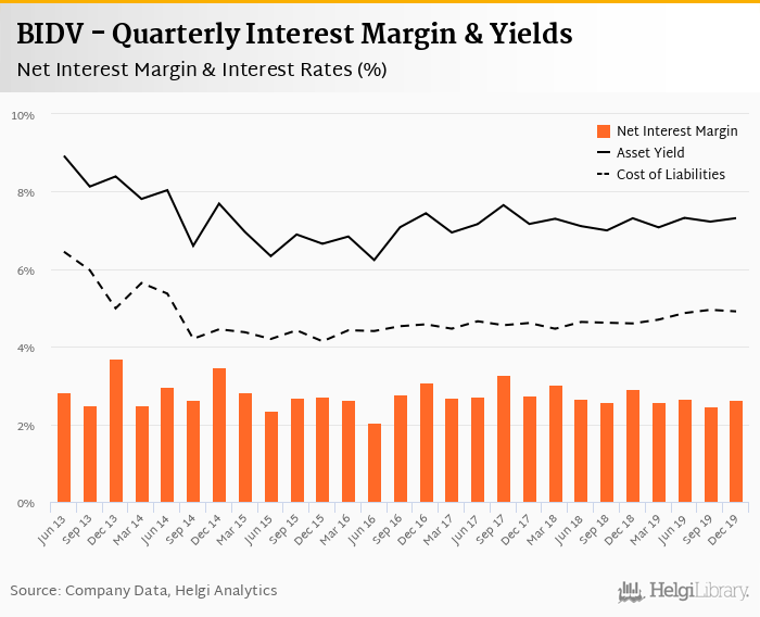 BIDV's net interest margin amounted to 2.64% in the fourth quarter of 2019, up from 2.48% when compared to the previous quarter.
