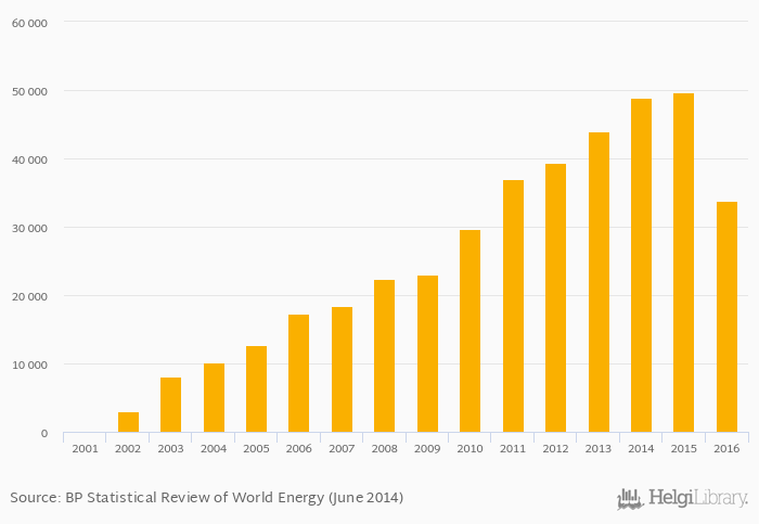 Biofuels production fell 31.9% to 33,861 bpd in China in 2016, according to World Bank / EIA.