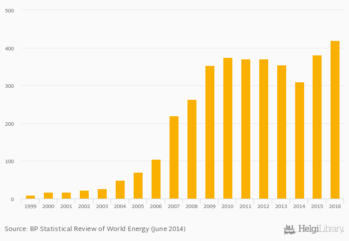 Biofuels production in tonnes of oil equivalent rose 10.1% to 419 kt in Austria in 2016, according to World Bank / EIA.