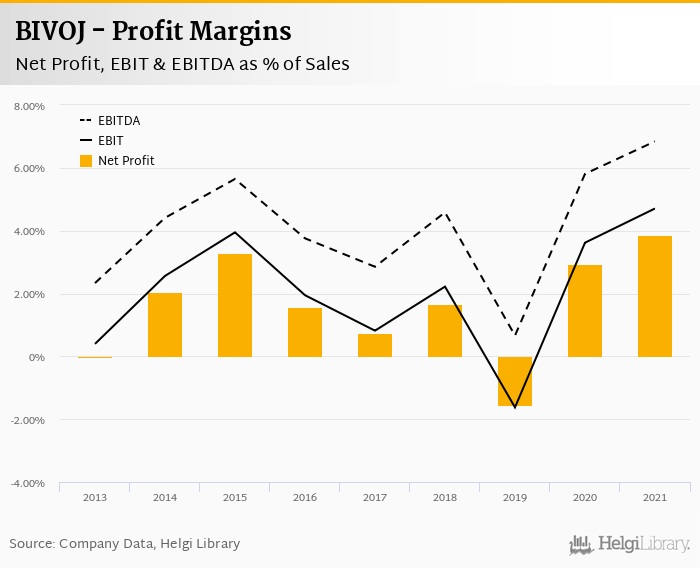 BIVOJ made a net profit of CZK 29.8 mil with revenues of CZK 771 mil in 2021, up by 21.0% and down by 7.62%, respectively, compared to the previous year.