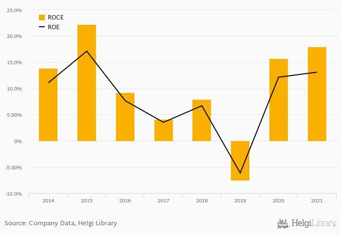 The result implies a return on equity of 13.1% and a return on invested capital of 18.0% in 2021. That is compared to an average of 5.85% and 7.65% over the last five years.