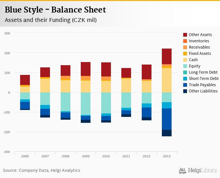 Blue Style's total assets reached CZK 223 mil at the end of 2013, up 57.3% compared to the previous year.