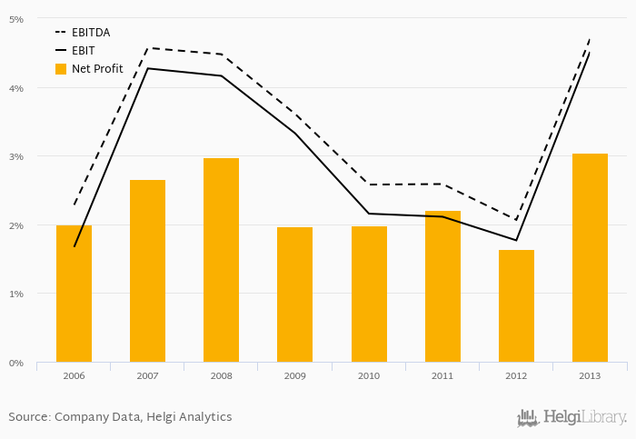 On the operating level, the EBITDA margin reached 4.70% and EBIT amounted to 4.51% of sales in 2013.