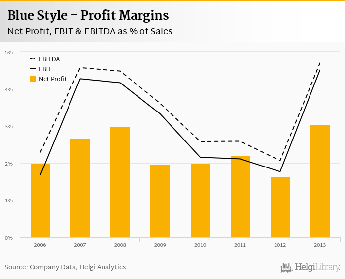 Blue Style made a net profit of CZK 44.2 mil with revenues of CZK 1,454 mil in 2013, up by 149% and up by 34.5%, respectively, compared to the previous year.