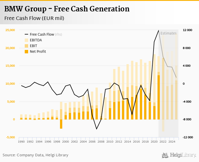 BMW Group made a net profit of EUR 12,382 mil with revenues of EUR 111,239 mil in 2021, up by 228% and up by 12.4%, respectively, compared to the previous year. This translates into a net margin of 11.1%.