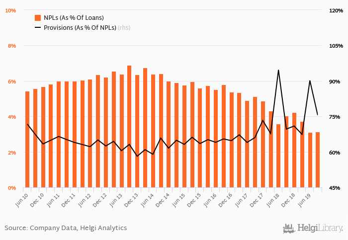 Provision coverage amounted to 75.5% at the end of 2019-09-30, up from 69.6% compared to a year earlier.