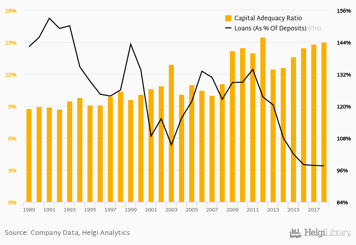 Bank's loan to deposit ratio reached 97.5% at the end of 2018, down from 97.7% when compared to the previous year. Some 10 years ago, loan to deposit ratio of the bank amounted to 123%.