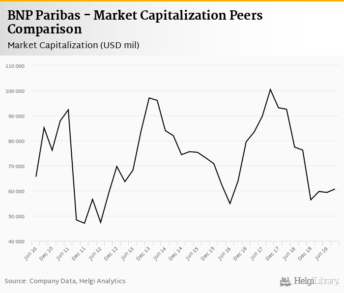 BNP Paribas stock traded at 44.7 per share at the end of third quarter of 2019 implying a market capitalization of USD 60,701 mil.