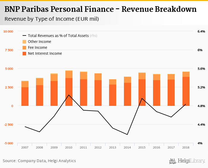 BNP Paribas Personal Finance generated total banking revenues of EUR 4,615 mil in 2018, up 7.68% compared to the previous year.