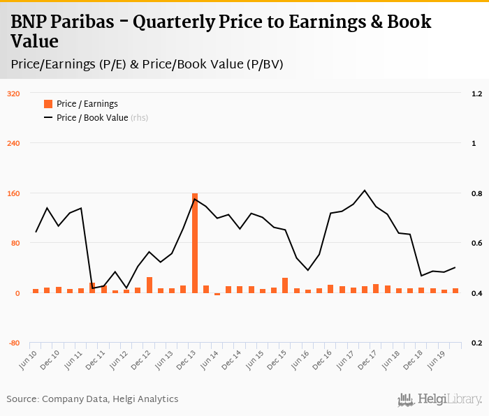 BNP Paribas stock traded at 44.7 per share at the end third quarter of 2019 implying a market capitalization of USD 60,701 mil.
