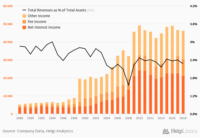 Bank's total revenues accounted for 2.27% total assets in 2018, down from 2.39% a year earlier.