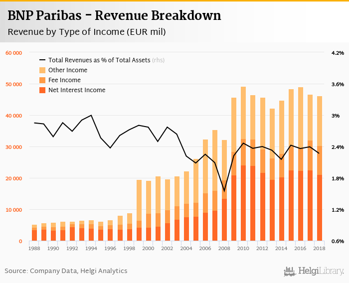 BNP Paribas generated total banking revenues of EUR 46,234 mil in 2018, down 0.943% compared to the previous year.