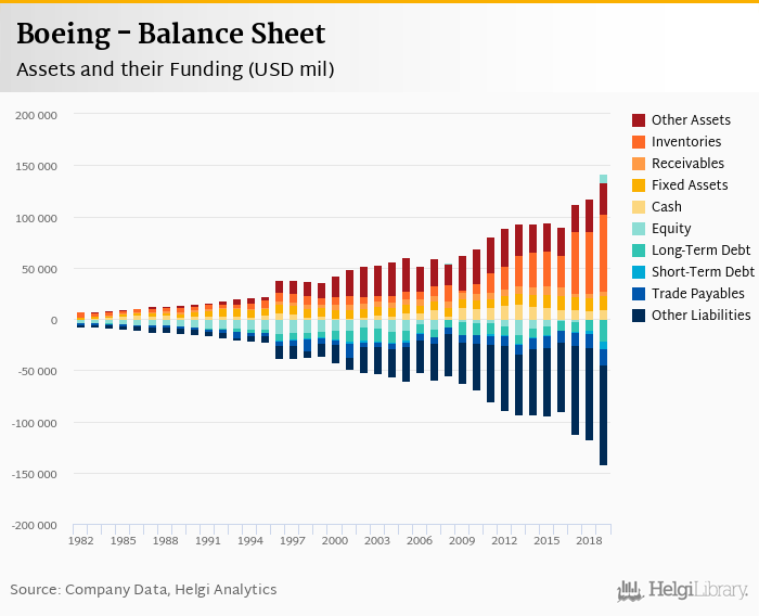 Boeing's total assets reached USD 133,625 mil at the end of 2019, up 13.9% compared to the previous year.