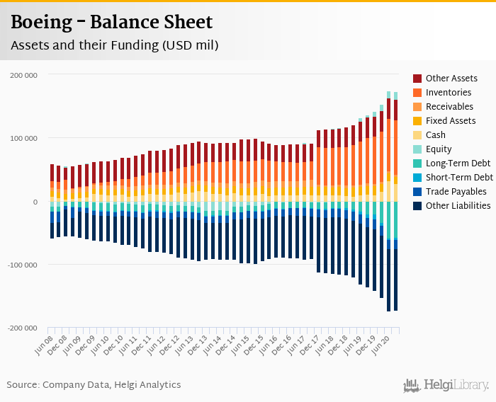 Boeing's total assets reached USD 161,261 mil at the end of 3Q2020, up 21.6% compared to the previous year.