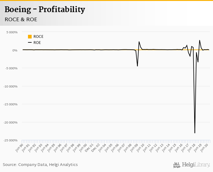 Boeing made a net profit of USD -449 mil in 3Q2020, down 138% compared to the previous year. Historically, between 1Q1990 and 3Q2020, the company's net profit reached a high of USD 3,424 mil in 4Q2018 and a low of USD -2,942 mil in 2Q2019.